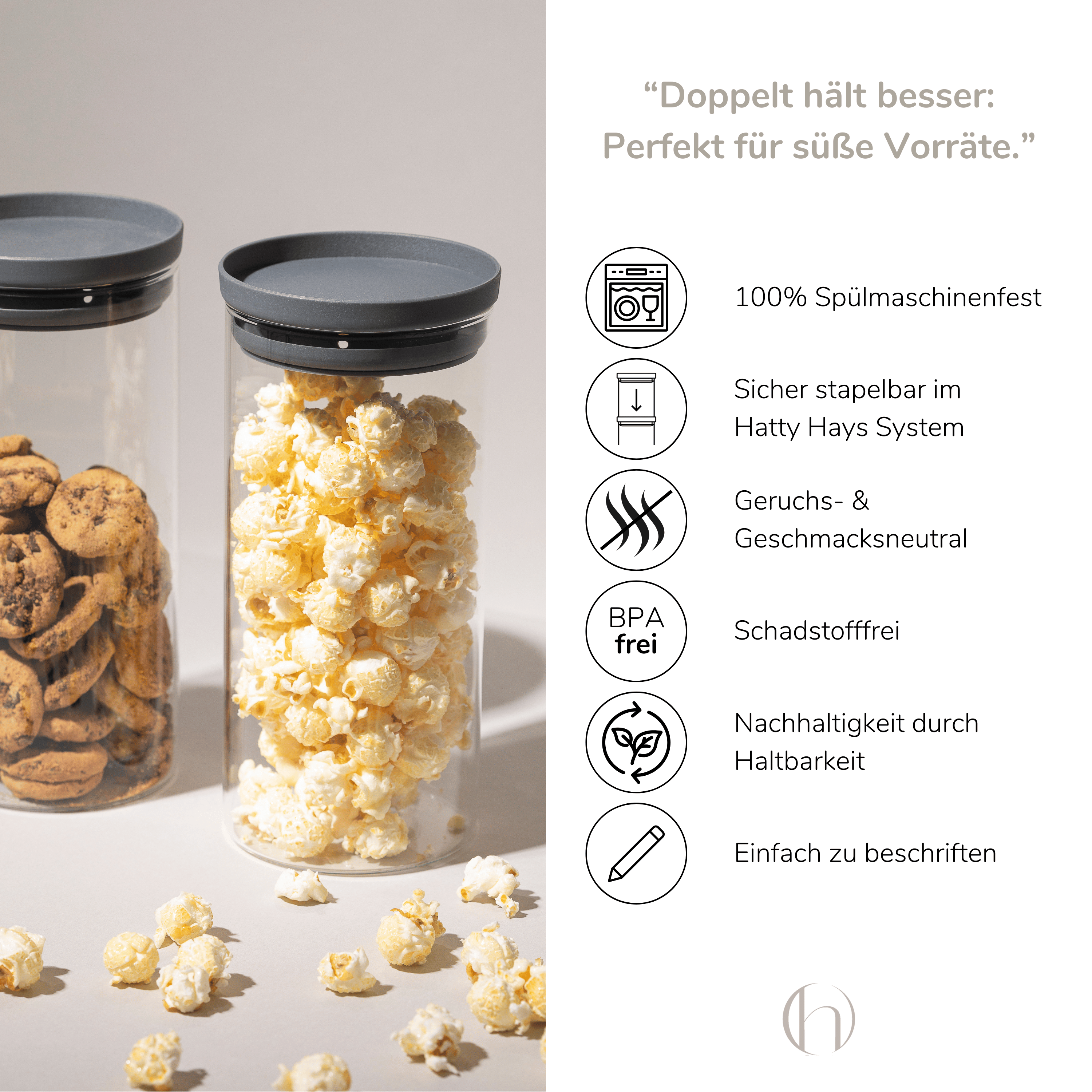 ✔️ DEKORATIV UND PLATZSPAREND – die stapelbaren Vorratsgläser haben ein elegantes Design und die Glasdosen eignen sich perfekt zur Organisation jeder Küche. Aufgerissene Tüten gehören der Vergangenheit an.